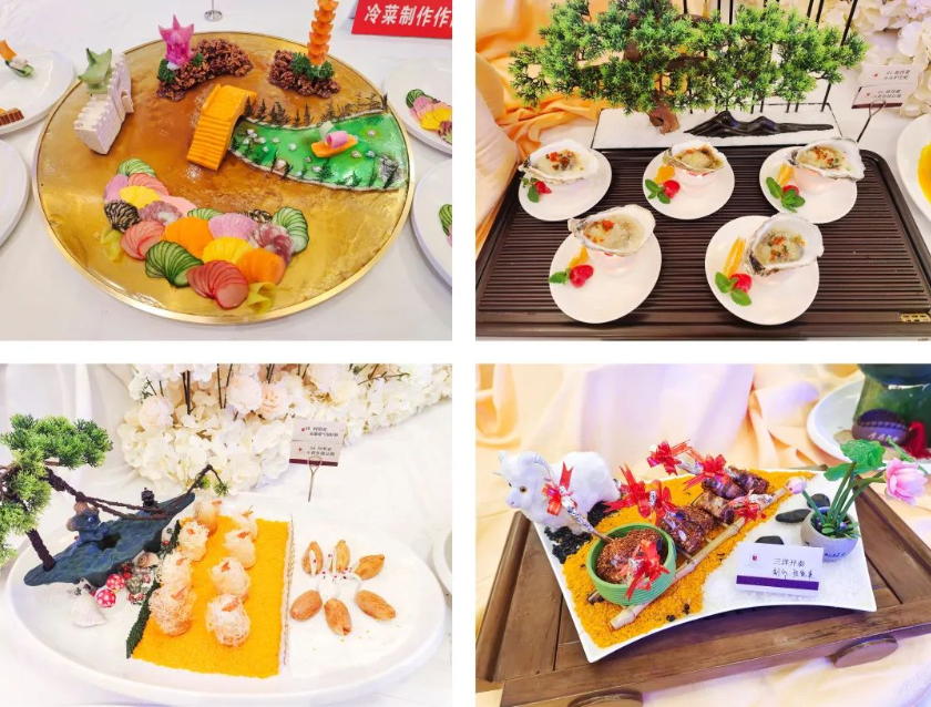 熱菜制作、冷菜制作、精細刀工的參賽選手各展其能,精益求精,紛紛拿出看家的本領、亮出練就的絕活,成排灶臺上不時翻起火紅的浪花,嫻熟的刀法刻畫出美妙絢麗的山水畫卷,貌似很平常不過的每一道熱菜、每一盤冷菜、每一個刀法卻蘊含著細致入微、精雕細琢、至真至誠,用靈巧的雙手和完美的創意展示出琳瑯滿目的美味佳肴,用色、香、味、形一應俱全征服了賽場的所有人,更為美食愛好者帶來了一場視覺與味蕾的盛宴!