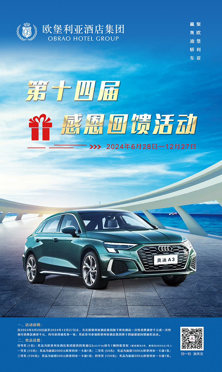 賓客永遠(yuǎn)是品牌成長(zhǎng)與效益增長(zhǎng)的生命力,歐堡利亞酒店集團(tuán)在戴春明董事長(zhǎng)倡導(dǎo)“高起點(diǎn)規(guī)劃、高品質(zhì)建設(shè)、高標(biāo)準(zhǔn)管理”方針的正確指引、全體歐堡利亞酒店人的辛勤耕耘下,已走過(guò)了輝煌燦爛的13年歷程,先后成功建設(shè)并運(yùn)營(yíng)管理了12家酒店,憑藉快速的擴(kuò)張發(fā)展勢(shì)頭、豐富的酒店建設(shè)水平、優(yōu)異的經(jīng)營(yíng)盈利能力、成熟的酒店管理經(jīng)驗(yàn),不僅為賓客完美地展現(xiàn)了一個(gè)勇于創(chuàng)新、積極進(jìn)取的品牌形象,更是通過(guò)線上、線下的多種活動(dòng),讓賓客真實(shí)地體驗(yàn)到歐堡利亞酒店有溫度、有品質(zhì)的服務(wù),賡續(xù)秉承“心懷感恩,誠(chéng)信永遠(yuǎn)”的服務(wù)理念,愿把幸運(yùn)和回饋送給一如既往支持歐堡利亞酒店事業(yè)可持續(xù)、高質(zhì)量發(fā)展的每一位賓客朋友!