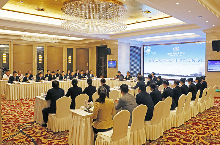 在匯報會上,兩位國家級星評員、省市縣文旅部門領導聽取了歐堡利亞大酒店董事長鄧棟關于酒店五星復核的情況匯報。鄧董詳細匯報了酒店基本情況、近三年經營管理情況、五星復核準備情況、自評打分情況,重點介紹了酒店近三年來在管理體系、企業文化、優質服務、開拓經營、降本增效、安全管理等方面的舉措;兩位國家級星評員就酒店基礎設施、經營情況、團隊結構、節能降耗、應急預案、星評準備等工作進行了提問,酒店管理層逐一給予了翔實回答。
