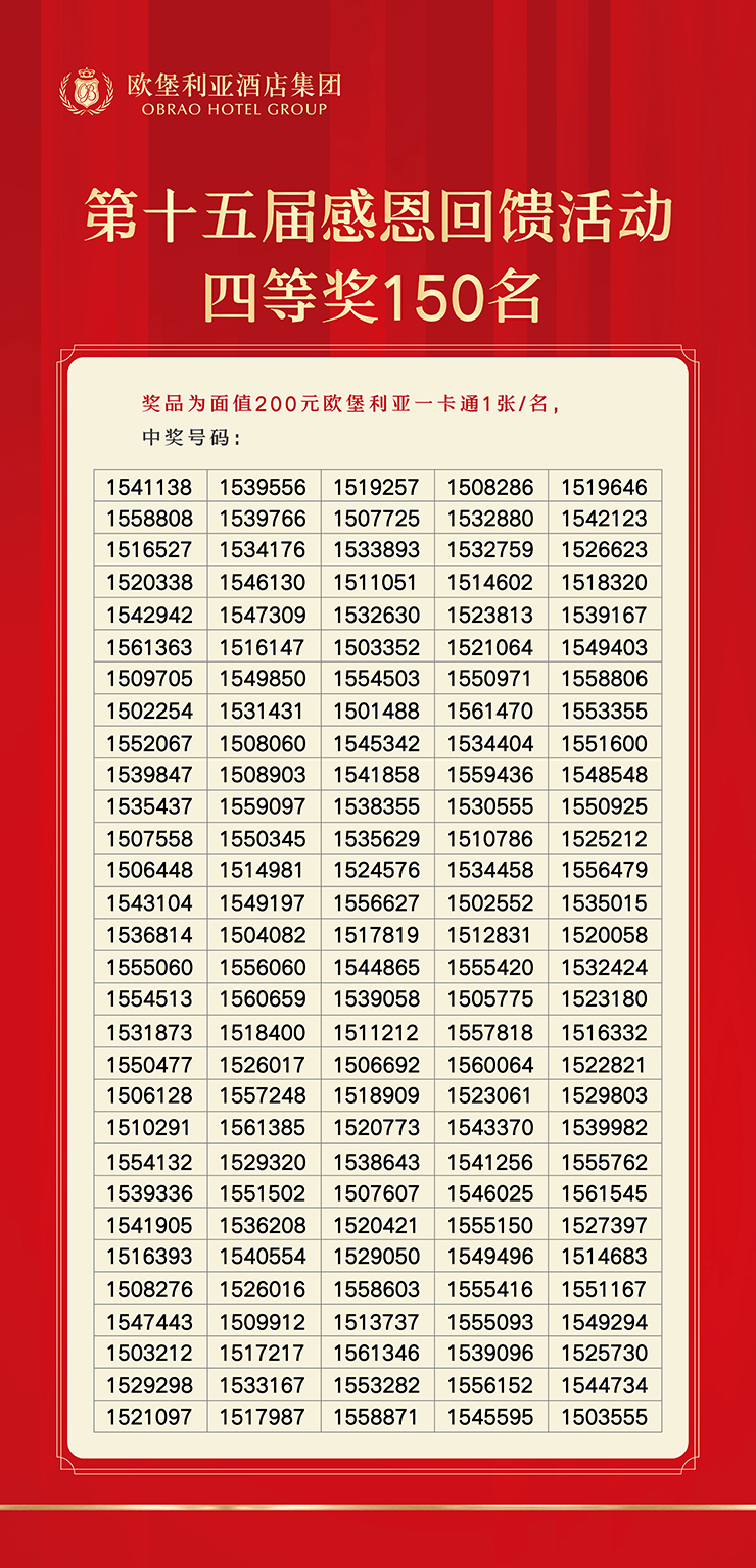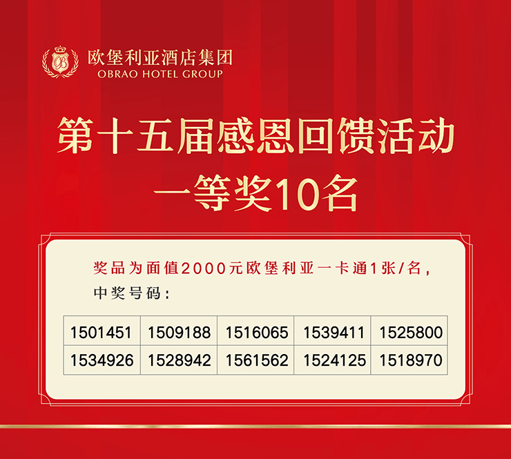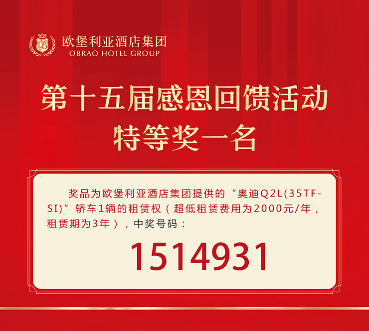歷時50分鐘的歐堡利亞酒店集團第十五屆感恩回饋活動雖如白駒過隙般降下了帷幕,但承載著歐堡利亞酒店集團對社會各界人士、廣大賓客朋友的滿滿感恩,也見證了一個又一個幸運時刻的誕生,這不僅是歐堡利亞酒店集團回饋社會各界人士、廣大賓客朋友的誠意之舉,更是感恩賓客一路相隨、追求極致服務體驗的生動體現。在未來的日子里,歐堡利亞酒店集團將賡續秉承感恩之心,積極承擔社會責任,不斷創新經營模式,切實增強品質管理,用更優質的服務和難忘的體驗去回饋社會各界人士、廣大賓客朋友,愿與社會各界人士、廣大賓客朋友攜手書寫歐堡利亞酒店事業又好又快發展的新篇章,共同期待著更加美好的未來!