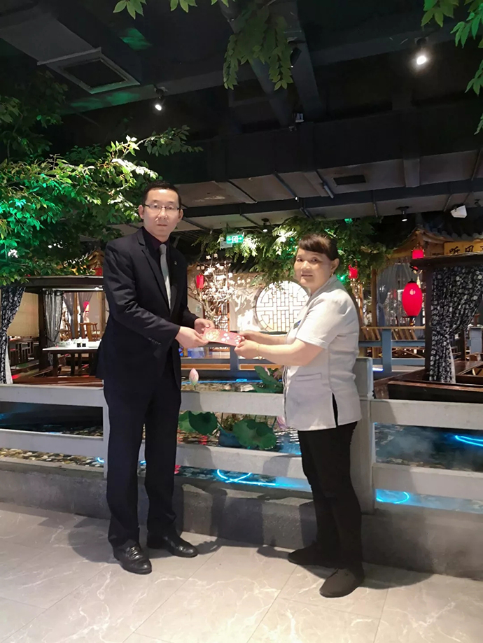 感動是瞬間的,精神是永恒的。為積極踐行社會主義核心價值觀,大力弘揚社會主義優良美德,全面推進歐堡利亞酒店文化建設,歐堡利亞酒店集團鄧棟總經理知悉了此事后,立即作出批示,號召全體歐堡利亞酒店人都要身體力行,認真學習楊海云同志在平凡的崗位上做了凡人善舉、弘揚了正能量,勿以善小而不為、勿以惡小而為之,從小事做起、從每一個細節做起,用實際行動展現歐堡利亞酒店人的優秀品質和精神風貌,并委托歐堡利亞江南明灶夏彬彬總經理向楊海云頒發了拾金不昧獎勵金。誠然,拾金不昧已不是什么新鮮的話題,此次楊海云的平凡善舉也不是歐堡利亞酒店良好風范的孤例,歐堡利亞酒店每年都會有100多例拾金不昧的優秀事跡涌現,這與歐堡利亞酒店集團長期以來十分重視員工的誠信教育和建立激勵向善機制是分不開的。誠信是一桿無形的秤,丈量著人的道德底線和人格魅力,小善帶動大愛,大愛感動社會,歐堡利亞酒店集團一以貫之地要求每一名員工都要吸取心存“善念”、“大愛”表率之人的精神營養,讓拾金不昧精神從自身傳承和發揚下去,為弘揚企業文化、傳遞企業精神增光添彩!