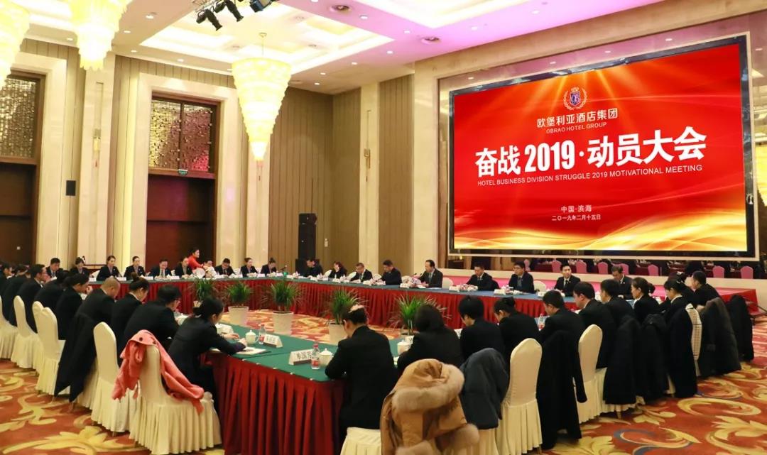 人勤春來早,萬事日相催。在整個歐堡利亞集團認真學習、貫徹戴春明董事長在集團年會上的重要講話精神,全力推動歐堡利亞事業跨越式發展的大好形勢下,2019年1月15日,歐堡利亞酒店集團在歐堡利亞大酒店歐堡廳隆重召開了“奮戰2019年”動員大會,歐堡利亞酒店集團鄧棟總經理、胡也華副總經理、王毅剛副總經理、王世江副總經理、曹楓總經理助理、戴榮鋼總經理助理、酒店集團各部門人員、下屬8家酒店及2家商管公司及領班以上等管理人員,總計178人參加了會議,共同砥礪前行在歐堡利亞酒店事業高品質發展的路上。