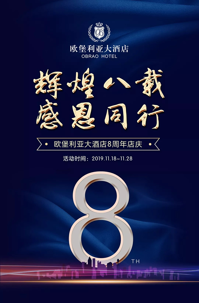 輝煌八載,感恩同行|歐堡利亞大酒店八周年店慶,禮獻全城!