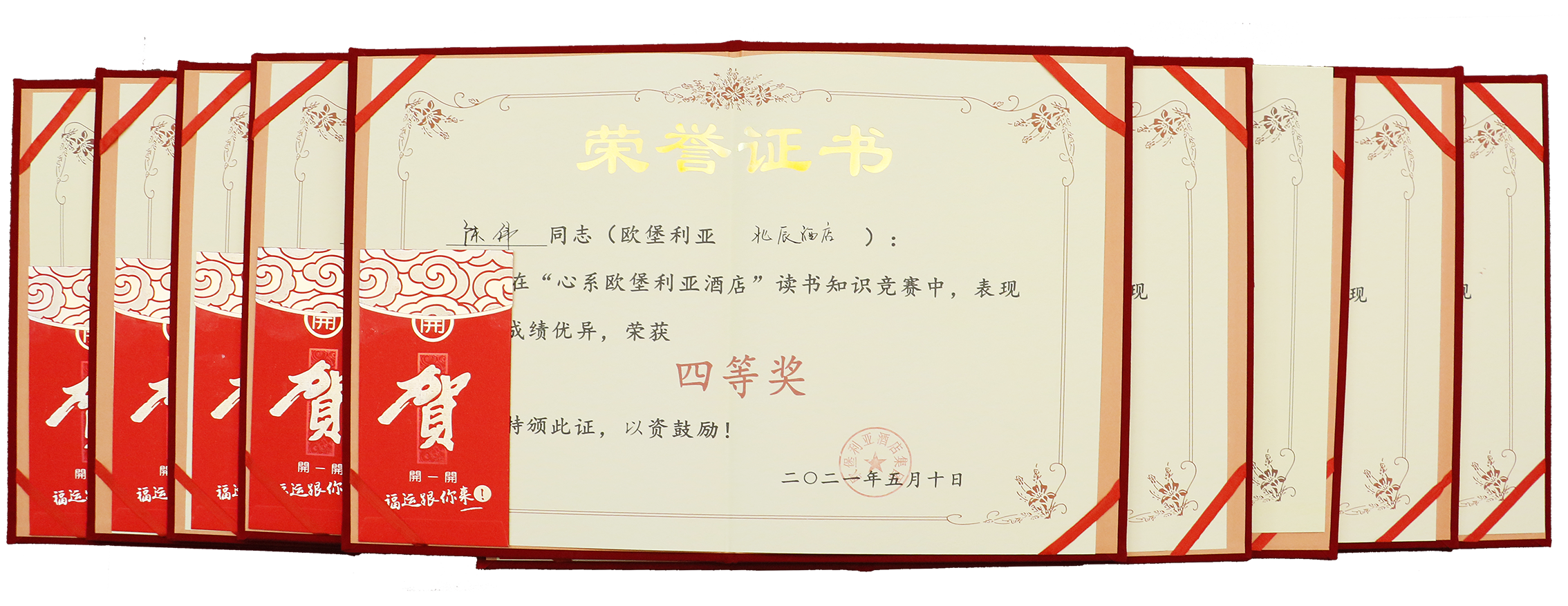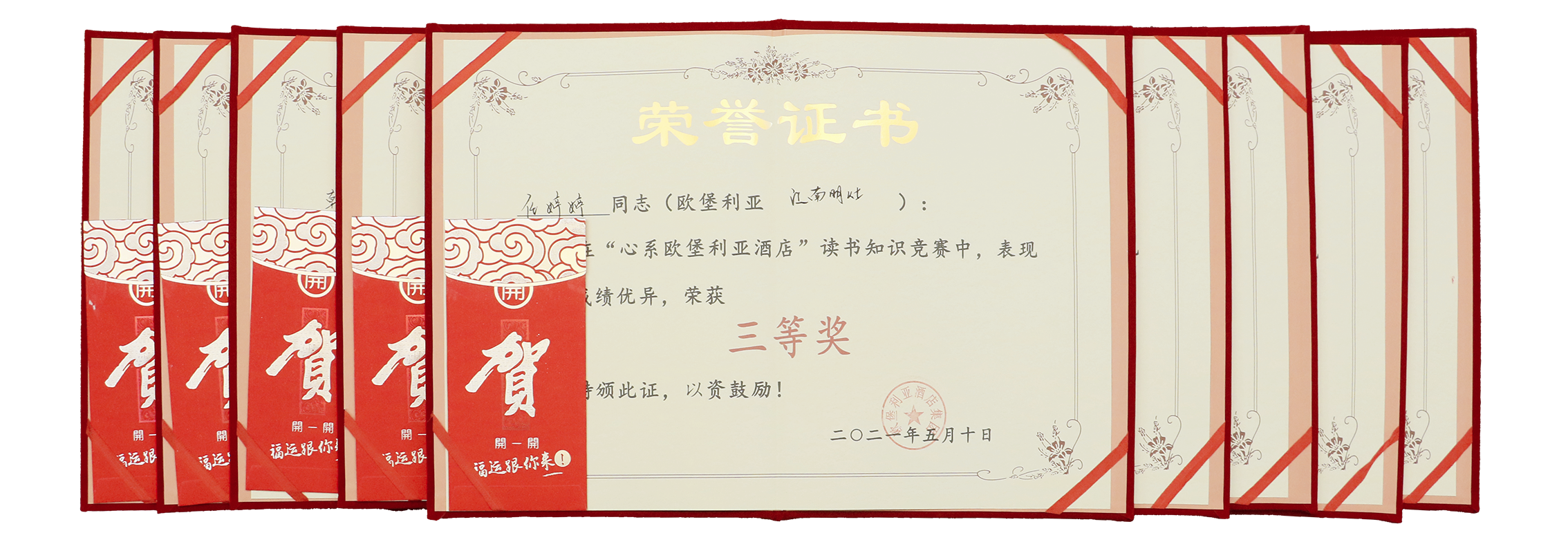 一分耕耘必有一分收獲,榮譽屬于不懈奮斗之人。根據標準答案,經過連續6天的集中改卷、逐項合分、詳細統計、精準排名、報請審批,歐堡利亞酒店集團“心系歐堡利亞酒店”讀書知識競賽獲獎名單于2021年5月15日正式揭曉,歐堡利亞大酒店李穎、歐堡利亞建湖格林東方酒店左晶晶、歐堡利亞濱海商管公司周昌青等38名參賽員工脫穎而出,分別獲得了特等獎、一等獎、二等獎、三等獎、四等獎的榮譽證書及獎勵資金,充分彰顯了歐堡利亞酒店人勤奮好學、昂揚向上、積極進取、永不服輸的精神風貌。