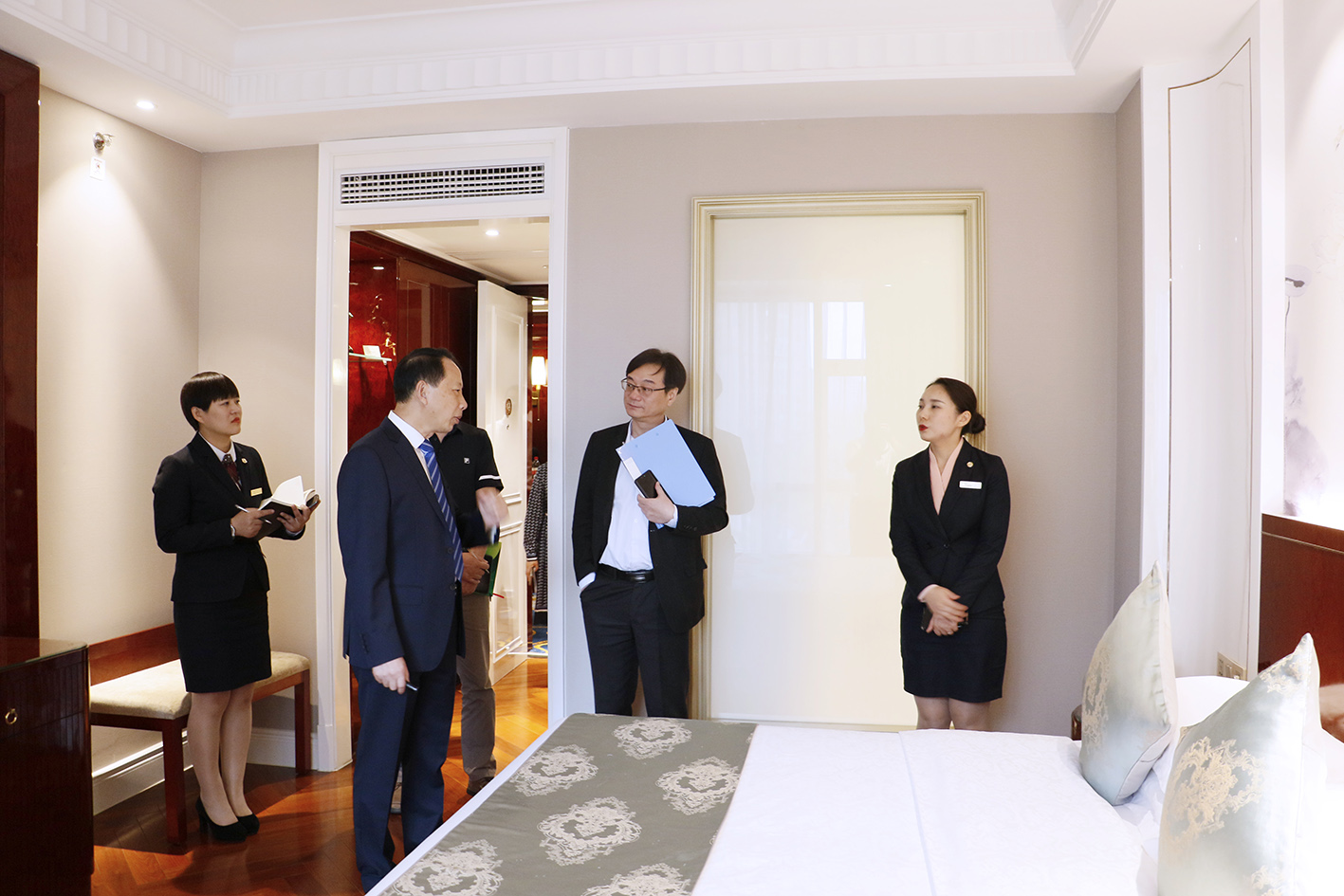 ▲ 市級星評員及相關領導檢查客房