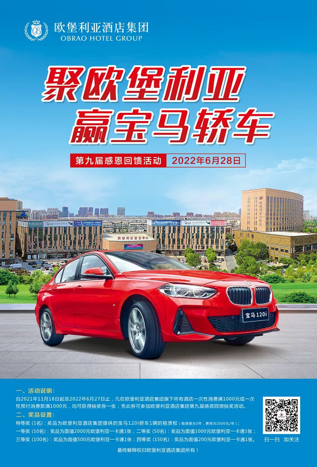 在第八屆感恩回饋活動(dòng)接近尾聲時(shí),“歐堡利亞酒店集團(tuán)第九屆感恩回饋活動(dòng)”正式啟動(dòng),在2021年11月18日至2022年6月27日期間,凡在歐堡利亞酒店集團(tuán)旗下的所有酒店一次消費(fèi)滿1000元或一次預(yù)付消費(fèi)滿1000元的客戶,均可獲贈(zèng)第九屆感恩活動(dòng)抽獎(jiǎng)券1張,讓更多的歐堡利亞酒店新老賓客朋友能享受消費(fèi)之外的更大驚喜。