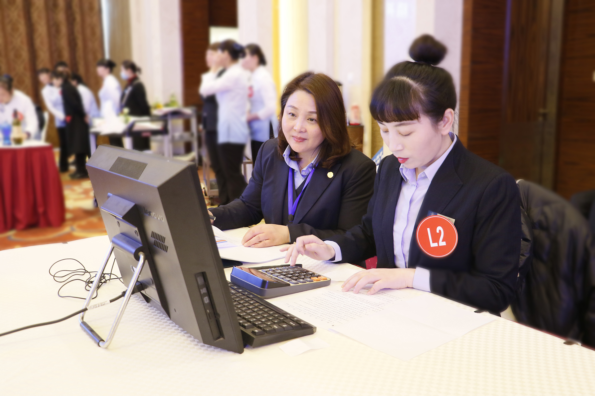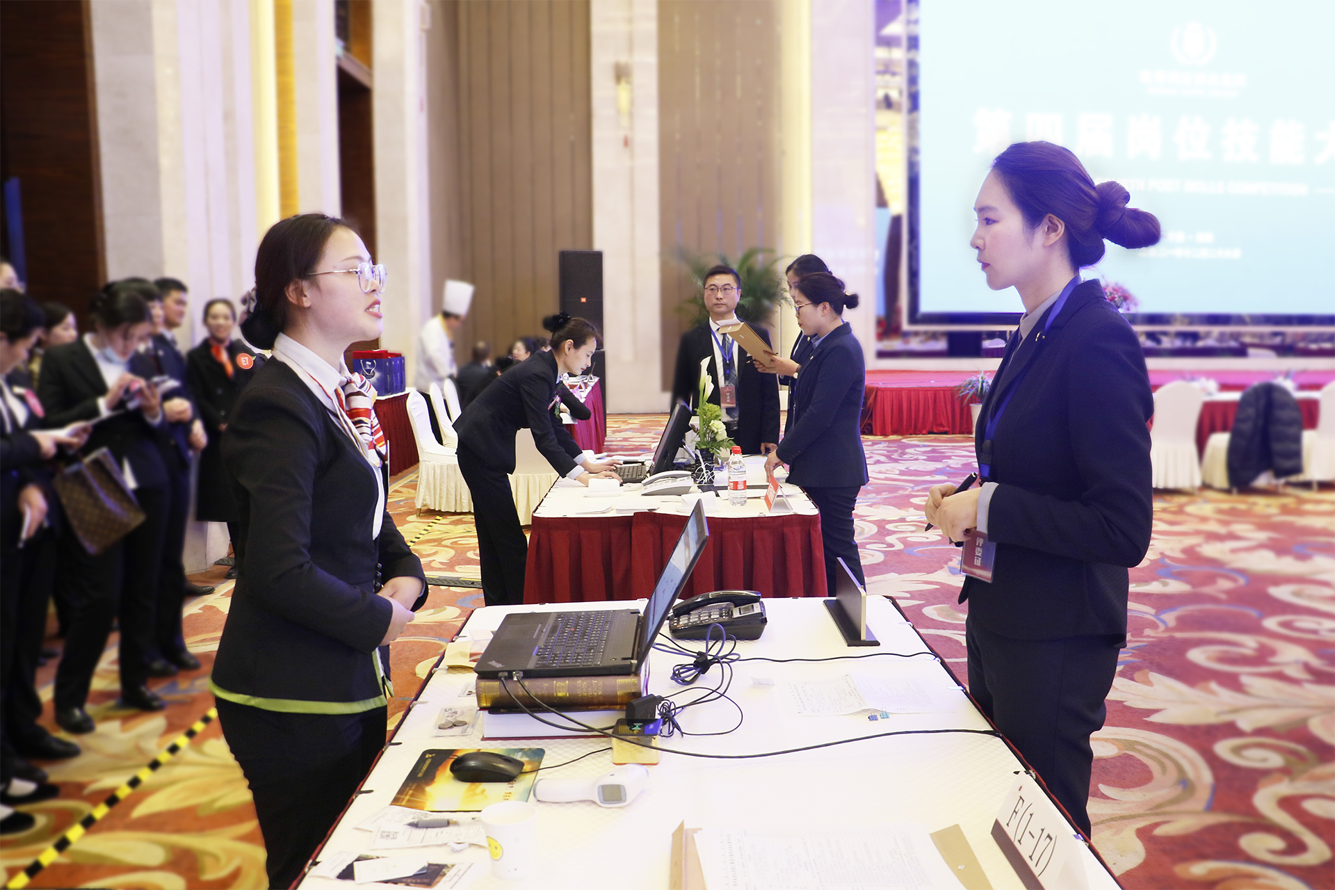 第四屆崗位技能大賽設有客房服務(分為A、B兩組)、餐廳服務(分為A、B兩組)、前廳服務(分為A、B兩組)、熱菜制作、冷菜制作、精細刀工、保安實操、工程維修、財務技能共計9個比賽項目,經過參賽部門、參賽單位的學習標準、組織培訓、強化練習、層層選拔強化培訓和層層選拔,參賽選手充分利用8小時之外的業余時間,盡管日常工作后有著些許勞累,卻依然毫無怨言地苦練崗位技能、用心奮力備賽。在主持人宣布第四屆崗位技能大賽開始后,身穿職業裝、佩戴評委證的大賽評委偕同身著工作裝、別著參賽牌的參賽選手,精神飽滿、信心百倍地邁著整齊有力的步伐向各比賽區挺進。