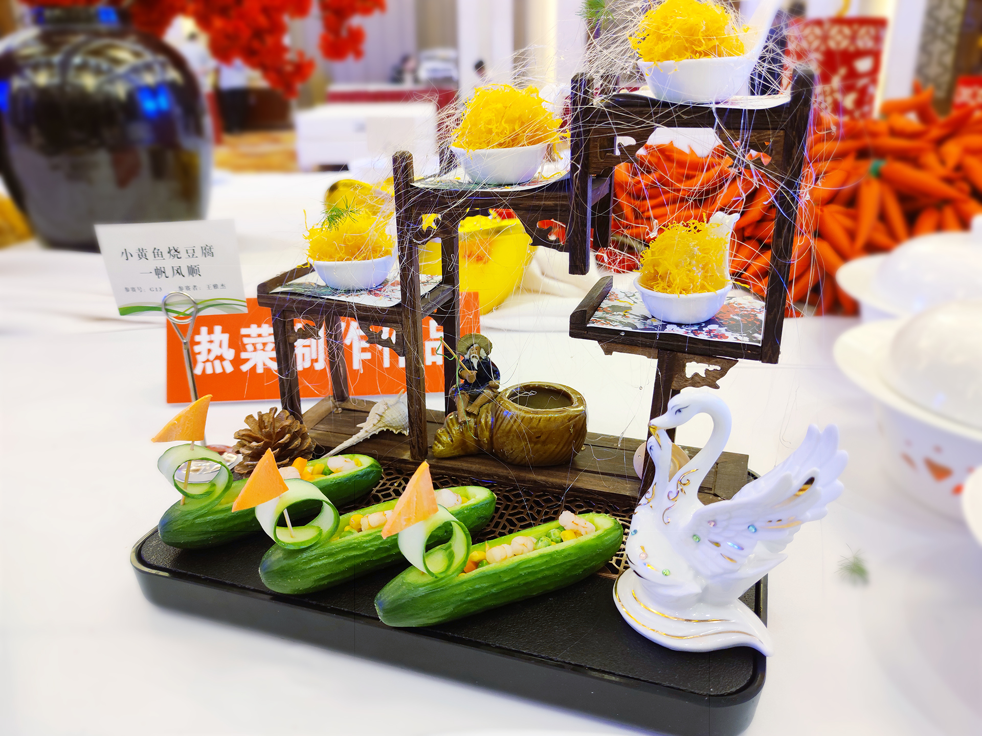 熱菜制作、冷菜制作、精細刀工的參賽選手紛紛拿出看家的本領、亮出練就的絕活,貌似很平常不過的每一道熱菜、每一盤冷菜、每一種面點、每一個刀法、每一項裝飾卻蘊含著細致入微、精雕細琢、至真至誠,琳瑯滿目的精美食品燃起了一場味蕾風暴,用色、香、味、形征服了賽場的所有人。